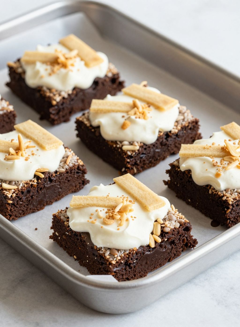 - Fudgy brownie texture with crisp edges and a soft center